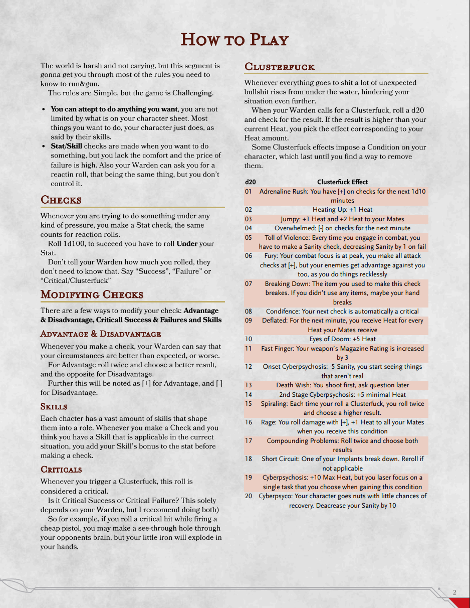 This is a cyberpunk rpg with a d100 roll under system that reworks the idea of "Stress" from MOTHERSHIP to turn it into an instrument of the players, where everything is better when it's on fire